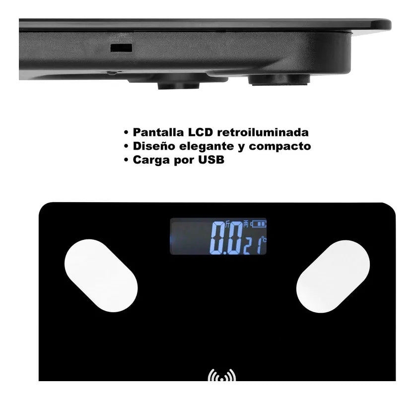 Potencia inteligente: Bota de presión inteligente Sensor con tecnología de 5ta generación Pesaje Continuo: con más de 2.5kgConcejo de sobrecarga: Consejo de alta sensibilidad por sobrecarga Alertas: De baja batería Medidas: 28 x 28 cm METRICAS CORPORALES Peso Porcentaje de grasa corporal IMC - Índice de masa corporal Peso libre de grasa Porcentaje de Agua Metabolismo Masa muscular Masa ósea