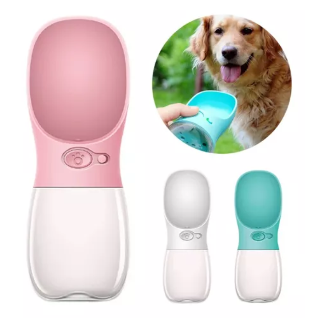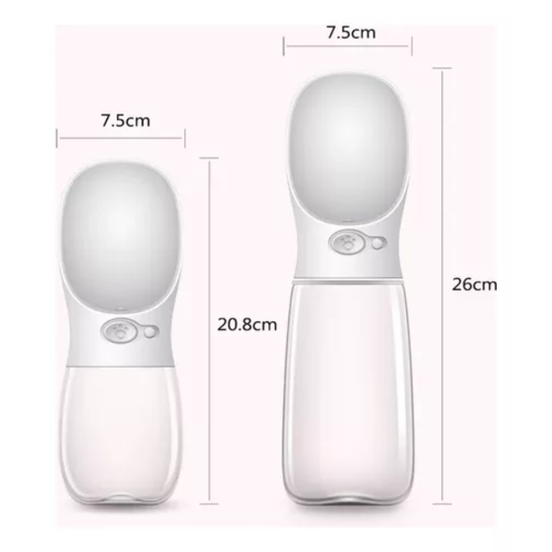 Bebedero portátil de 350ml con switch de seguridad para evitar derramen, trae correa para la mano y facilitar su movilidad, este producto es ideal para salir de aventura con tu peludo y nunca le falte el agua y de esa forma evitar deshidratación o golpes de calor.