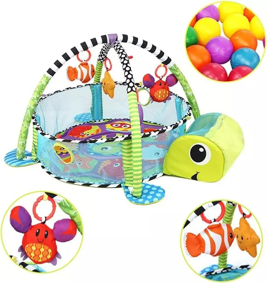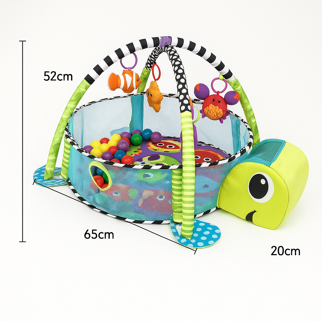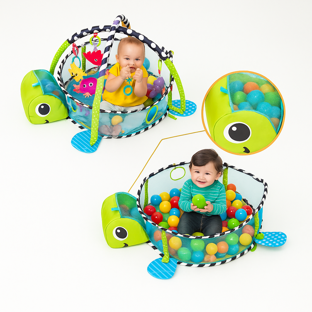 Dale a tu bebé un espacio seguro, divertido y estimulante con este adorable gimnasio en forma de tortuga. Diseñado para potenciar el desarrollo sensorial y motriz, este centro de actividades evoluciona con el crecimiento del bebé, ofreciendo diferentes modos de juego: alfombra de actividades, gimnasio con arco de juguetes y piscina de pelotas.