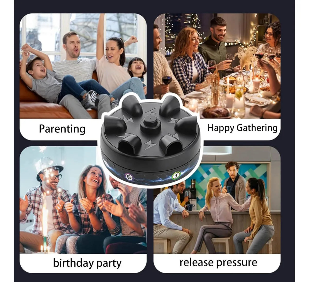 Hay 6 sensores de dedos, 6 luces. 3 ventosas en la parte inferior para evitar que se resbalen. El funcionamiento es sencillo, con un interruptor maestro, un botón de inicio y un botón de modo. Dos modos Modo aleatorio: primero, pulsa el botón de modo para seleccionar el número de personas que participan en el juego y, a continuación, pulsa el botón de inicio para entrar en este modo.