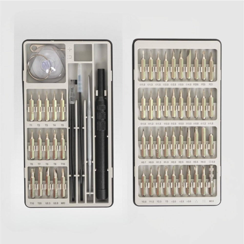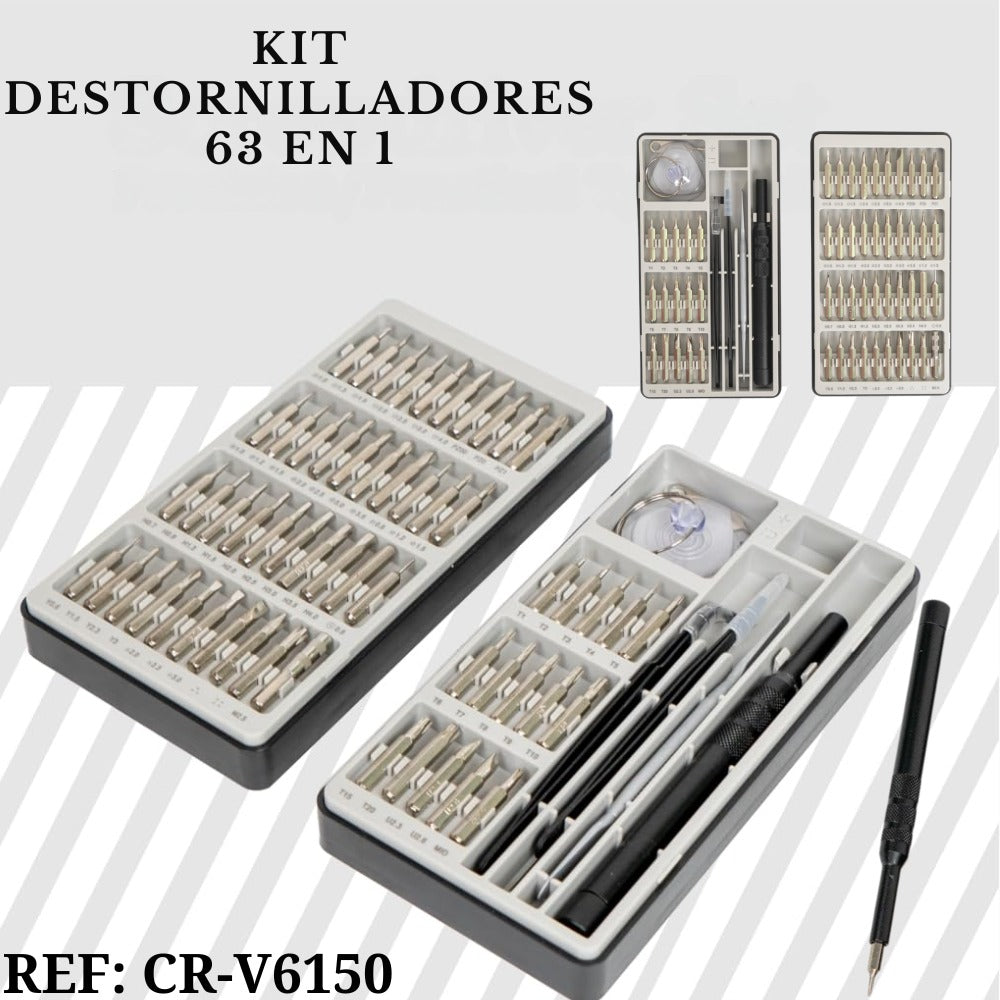 Este kit de destornillador de precisión te ofrece 63 herramientas esenciales para la reparación de ordenadores, smartphones, dispositivos electrónicos u otros objetos pequeños. Práctico y compacto.