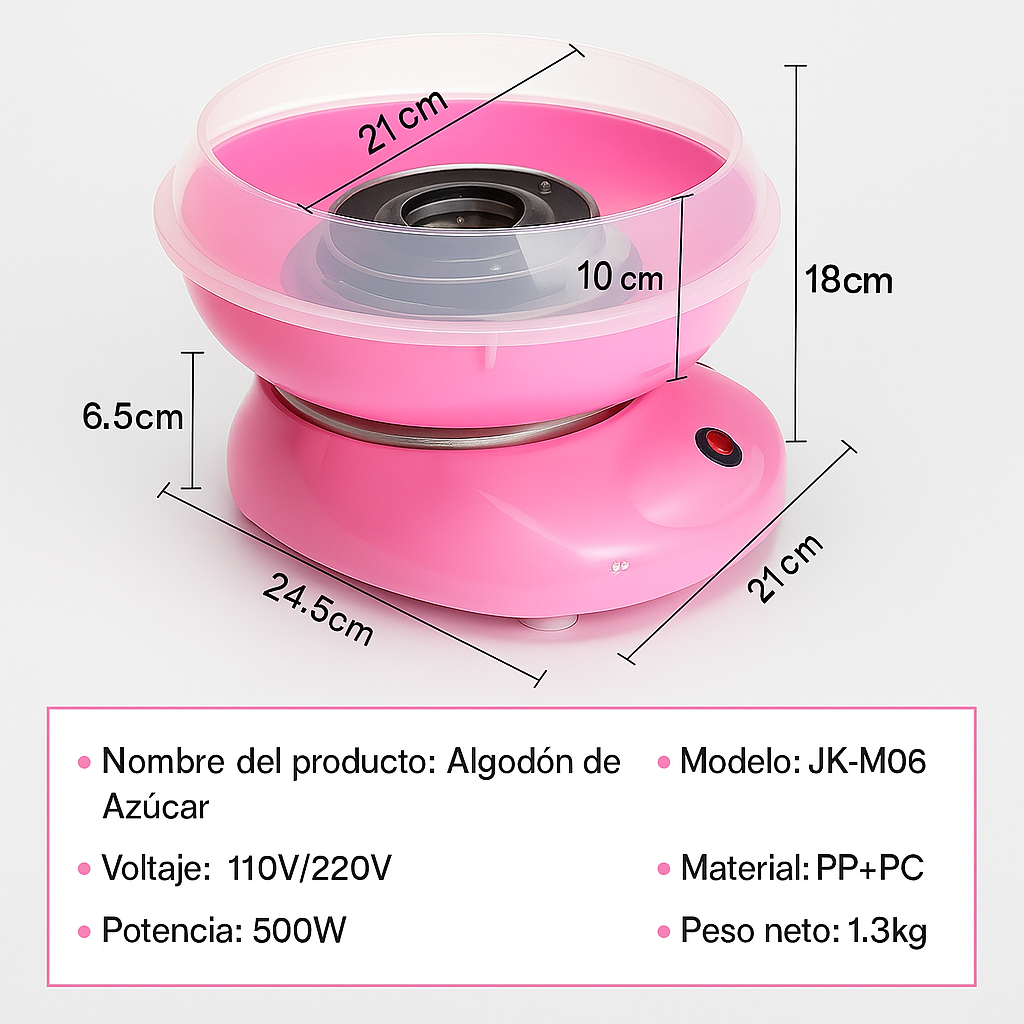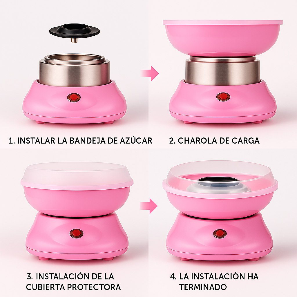 Solo tienes que juntar los deliciosos hilos de tus bastones de algodón de azúcar y disfrutar. Ideal para cumpleaños, bodas, Noche vieja o cuando quieras un sabroso manjar.