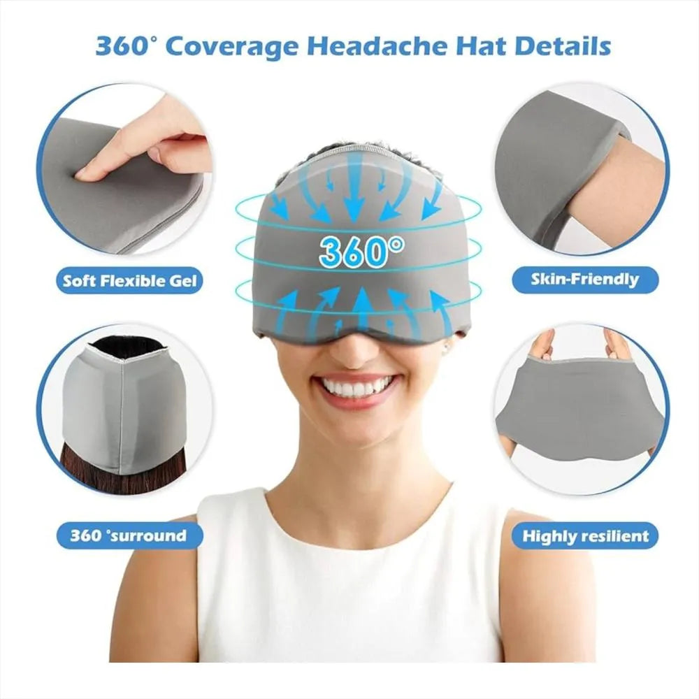 Gorro de Gel para terapia de calor y frío diseñado para el alivio del dolor de cabeza y migraña. Apto para uso durante quimioterapia, problemas de seno, envoltura de cuello, alivio del dolor de presión, masaje de estrés o como mascarilla para ojos.