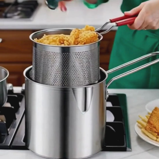 ✅ Características destacadas: Acero Inoxidable 304 Premium Fabricada con materiales de alta calidad, resistentes a la corrosión y al desgaste. Ideal para un uso prolongado Diseño Multifuncional Perfecta para freír, hervir fideos, calentar leche o preparar caldos. Una sola olla para múltiples funciones. Apta para todo tipo de estufas Compatible con gas, inducción, vitrocerámica y más.