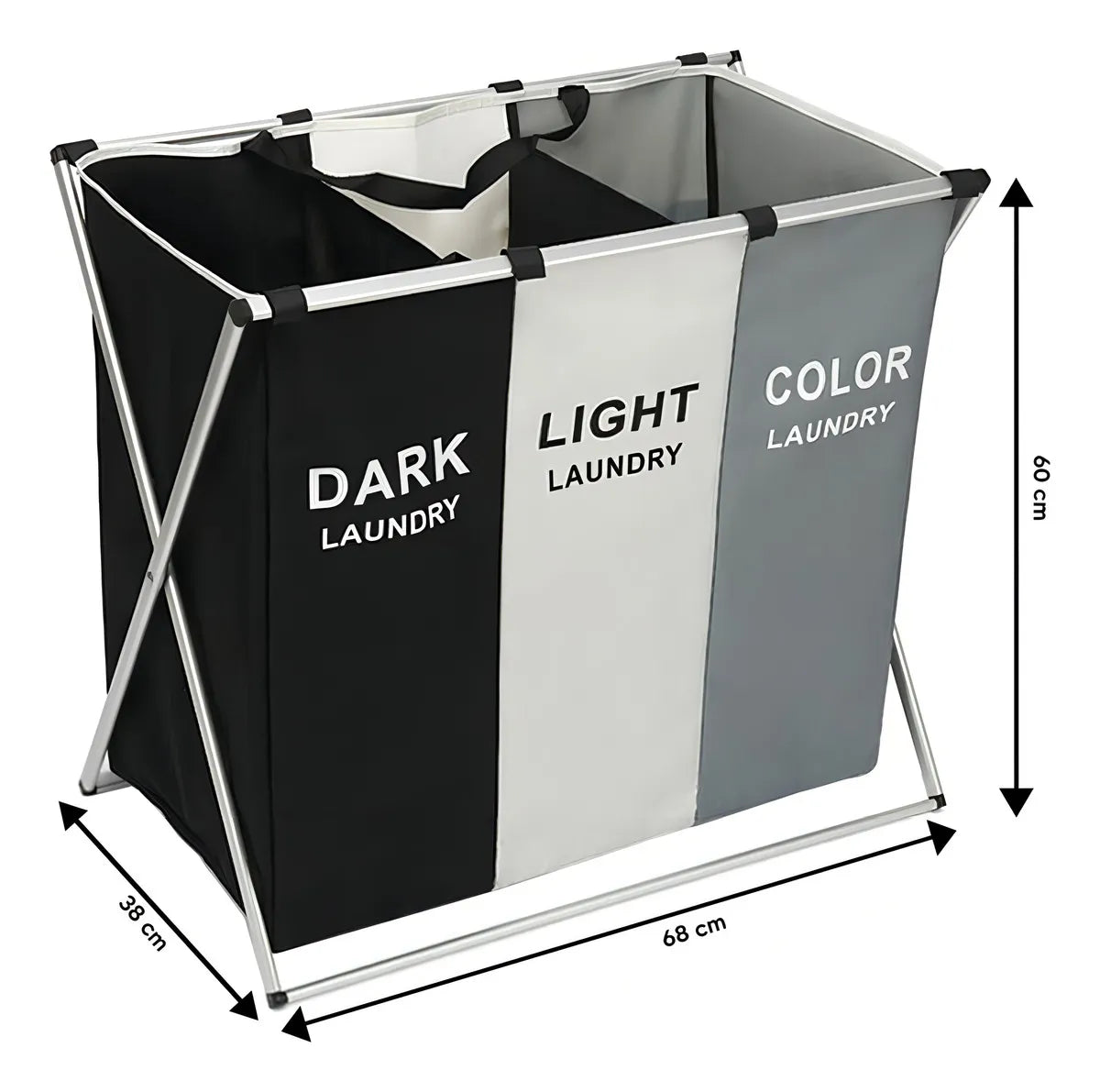 1 x Cesta de lavandería, clasificador de ropa de 3 secciones, cesta de lavandería, cesta de almacenamiento de ropa, clasificador de ropa sucia, papelera plegable portátil.