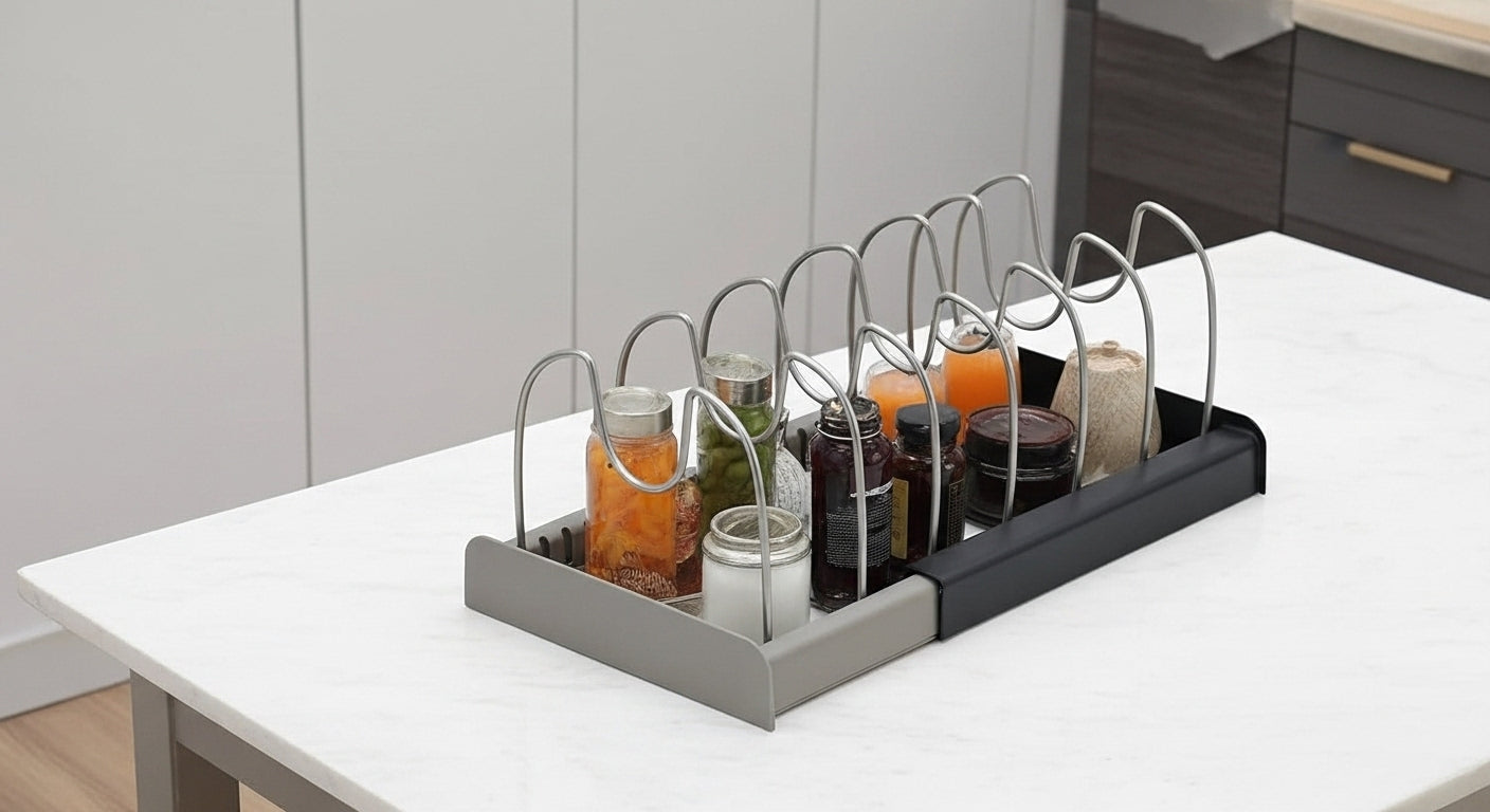 - Multiusos: el estante se puede colocar en encimeras, armarios y cajones. Nombre: rejilla u tapa de olla. Aplicación: adecuado u almacenar varias ollas, tapas, bandejas u hornear y otros artículos de mesa