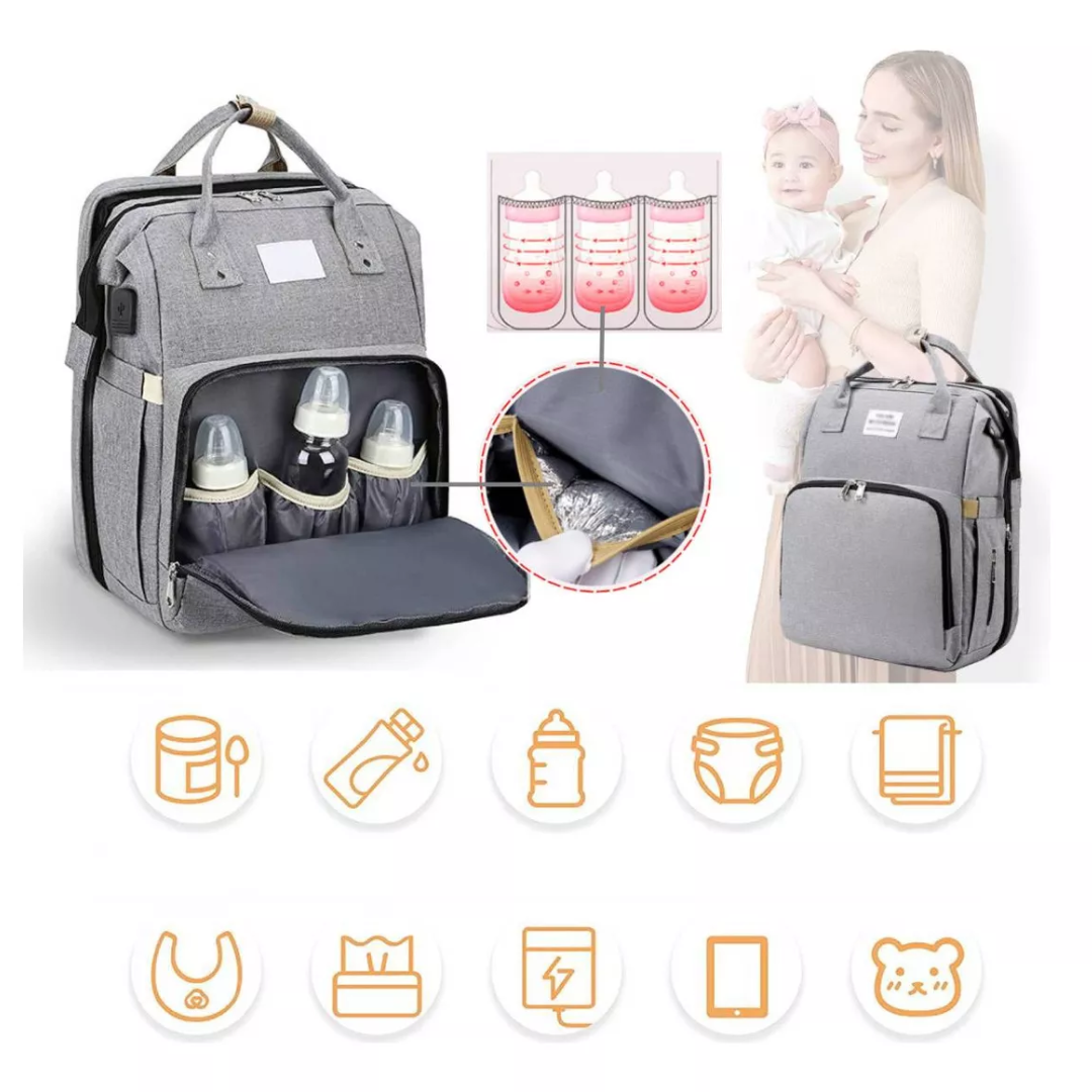 La Pañalera Tipo Cuna Multiusos es la solución definitiva para los padres ocupados. Este ingenioso diseño combina la funcionalidad de una pañalera con la comodidad de una cuna portátil, brindando un espacio seguro y cómodo para tu bebé en cualquier lugar que vayas.
