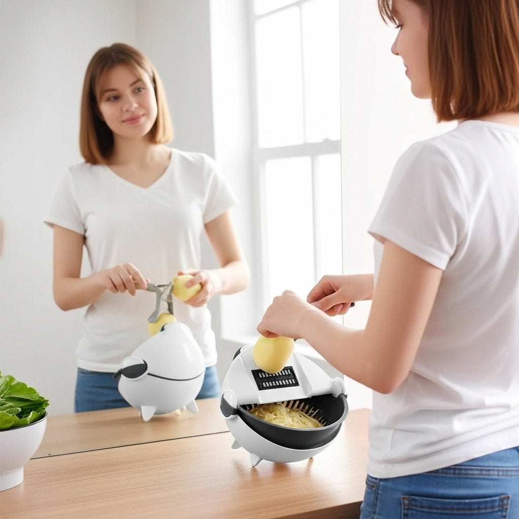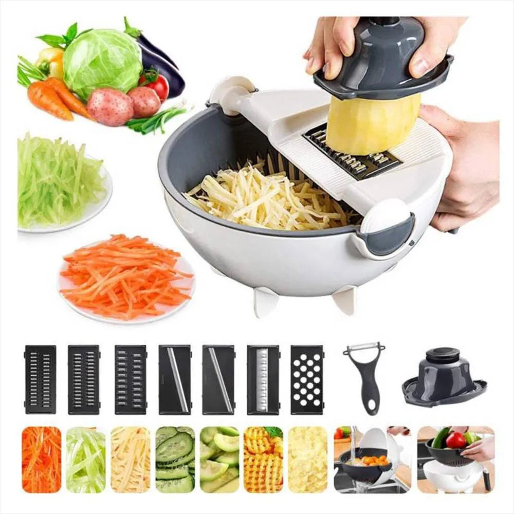 El Rallador Picador de Verduras 9 en 1 con cuchillas versátiles es el compañero ideal para tu cocina. Diseñado para simplificar la preparación de alimentos, este multifuncional rallador cuenta con múltiples cuchillas intercambiables que te permiten rallar, picar, cortar y más. Ahorrarás tiempo y esfuerzo mientras obtienes resultados profesionales en cada comida.