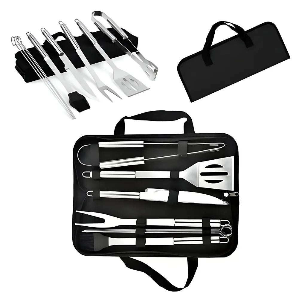 🍖🍴¡El aliado perfecto para tus asados, camping y reuniones al aire libre! Todo lo que necesitas en un solo estuche práctico y portátil.
