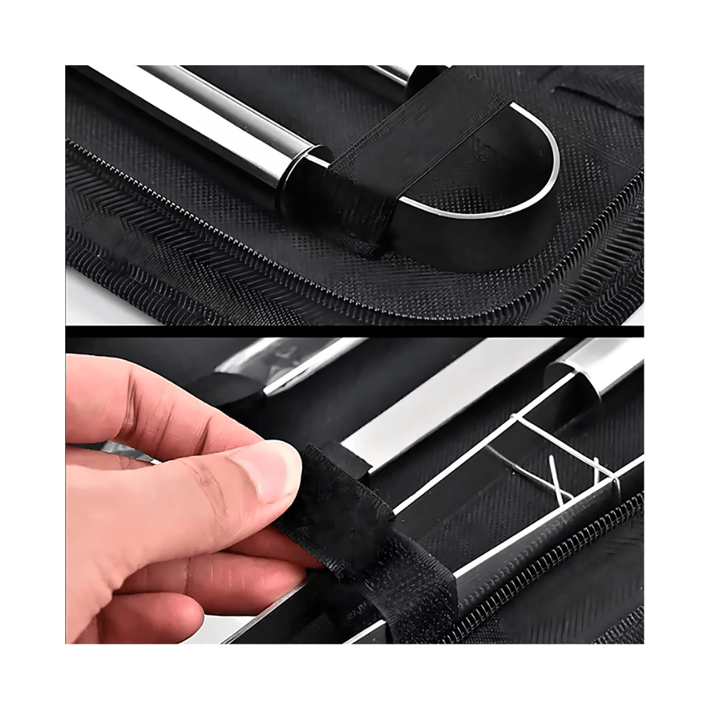 🚗 Portátil y Organizado Gracias a su estuche con cierre y correas internas, puedes llevar tu kit a cualquier lugar: parrilladas en casa, días de campo, playas o viajes.