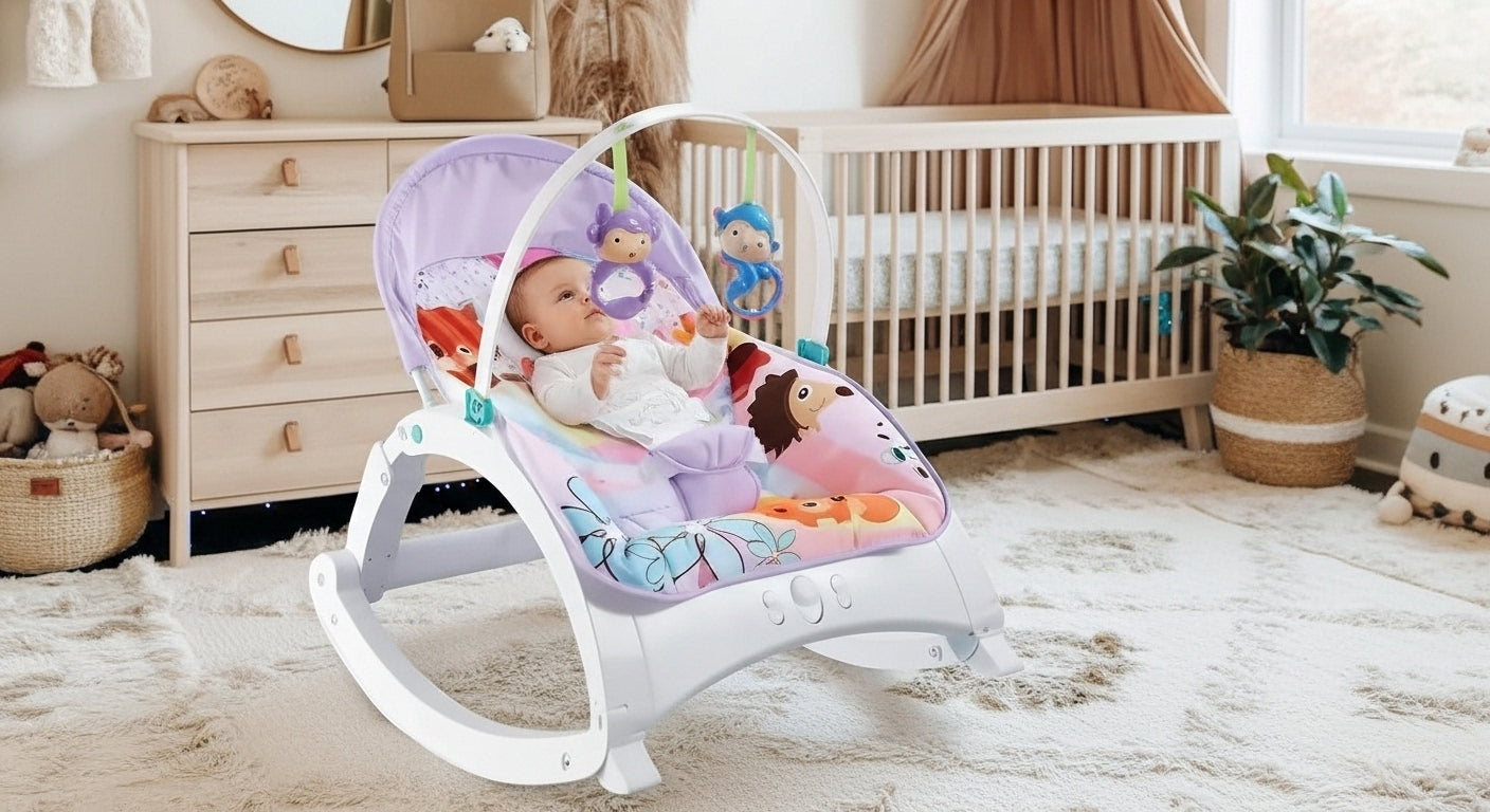 ¡Tu bebé merece lo mejor! Con la silla vibradora Crece Conmigo , tu pequeño disfrutará de un espacio seguro, cómodo y entretenido. Perfecta para jugar, descansar y alimentarse, esta mecedora evolutiva se adapta al crecimiento del bebé, ofreciendo tres posiciones de reclinado y un sistema de vibración relajante.