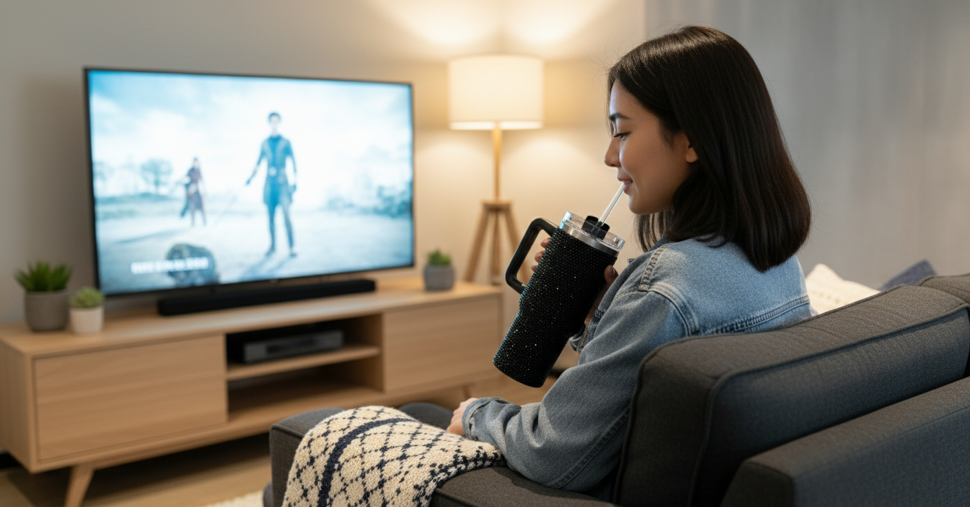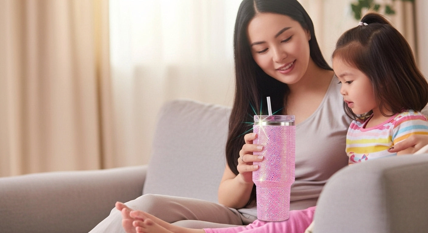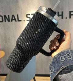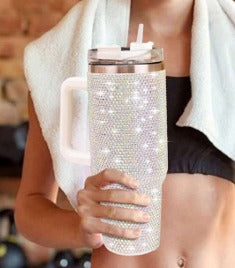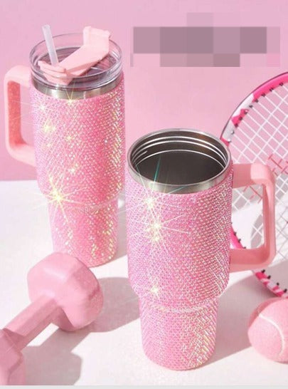 Termo con diseño brillante en varios colores con pitillo, tapa ajustable y capacidad de 900 ml